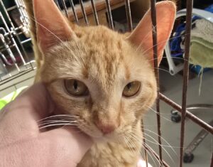 Chencho es un gato medio confiado en el sentido de que no ataca cuando le vas a manejar, pero se muestra muy tímido y con miedo. Llegó muy estropeado a la perrera: muy, muy delgado, mal pelo… Algo mejoró al tener a su disposición comida de continuo, pero recayó por una infección respiratoria y su aspecto actual, que nunca ha sido bueno, vuelve a ser desastroso. Ahora mismo permanece ingresado. Ha empezado a comer otra vez, pero necesitará tiempo para ponerse fuerte.